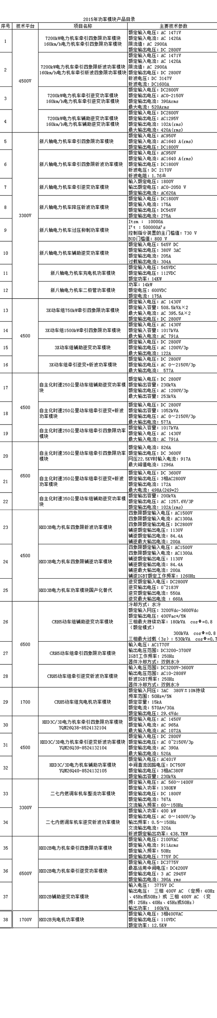 大功率機(jī)車(chē)變流功率模塊。配屬HXD2、HXD2B電力機(jī)車(chē)主/輔助變流柜。模塊采用先進(jìn)的水冷、風(fēng)冷散熱技術(shù),模塊化設(shè)計(jì),采用高壓IGBT開(kāi)關(guān)器件,功率密度大,可靠性高,技術(shù)含量高。公司已經(jīng)形成年產(chǎn)機(jī)車(chē)牽引/輔助功率模塊5000臺(tái)的能力。目前正在準(zhǔn)備配套大同電力機(jī)車(chē)300列,需生產(chǎn)模塊7000多臺(tái)。